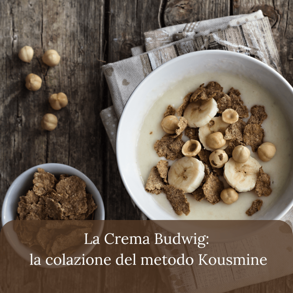 La crema Budwig, proposta dalla dottoressa Kousmine come parte del suo Metodo, costituisce un pasto completo, ricco delle vitamine e degli zuccheri semplici della frutta oltre che dei carboidrati dei cereali integrali crudi. Il metodo più rapido per prepararla prevede l’uso di un mixer adatto anche a macinare semi duri (non tutti i mixer lo fanno adeguatamente). In questo caso, dopo aver macinato il cereale e i semi di lino, si potranno aggiungere nello stesso mixer, se abbastanza capiente, anche tutti gli altri ingredienti.